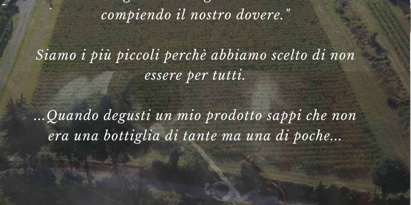 Curare il prodotto fa parte dei piccoli viticoltori, coloro che ogni mattina si alzano e vanno in vigna con la forte consapevolezza e la meticolosa attenzione, che il vino si ottiene dalla vigna e che ogni singolo grappolo dovrà trasferire il tuo lavoro.